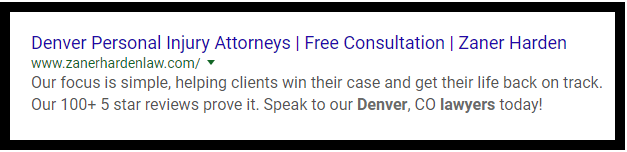 Many potential clients will use those blurbs to decide whether to visit the firm’s website. Be concise, try to stay under 200 characters, and use your meta description to explain why your firm stands out from the hundreds of other results the potential client is seeing.