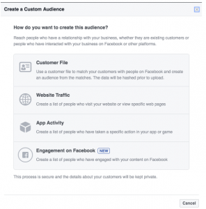 2. Click on Create Audience and choose Custom Audiences.