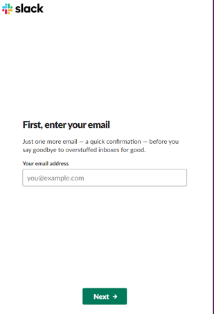 Below are instructions along with screenshots of what you should see as you follow along Slack’s process. The images below are meant to help guide you so please don’t confuse them with actual links. I do include links to download the Slack app towards the bottom.